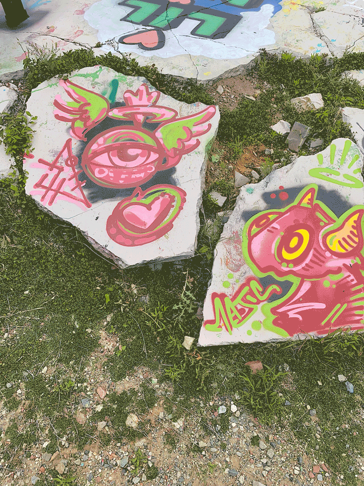 I used Polycam to capture some graffiti rocks at the Graffiti Park in Charlotte, NC. In Blender I added vegetation and a vine/root-growing system on the model to create this cool little scene.